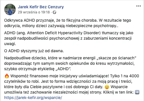 - Mit: ADHD jest spowodowane złym wychowaniem. Prawda: ADHD ma biologiczne i genetyczne podłoże, a nie jest wynikiem braku dyscypliny.